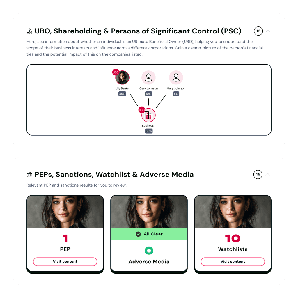 YOONO delivers advanced executive-research capabilities, including PEP and sanctions screening.