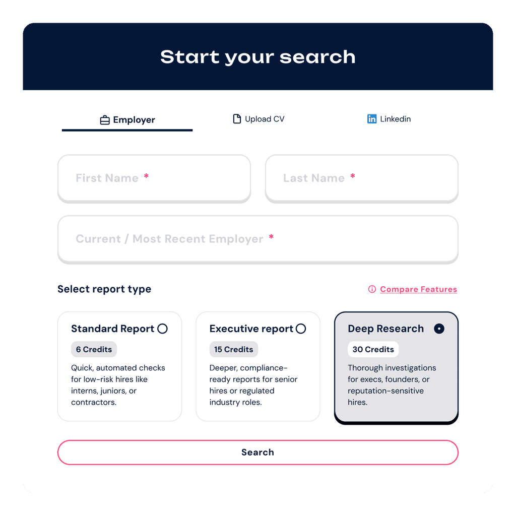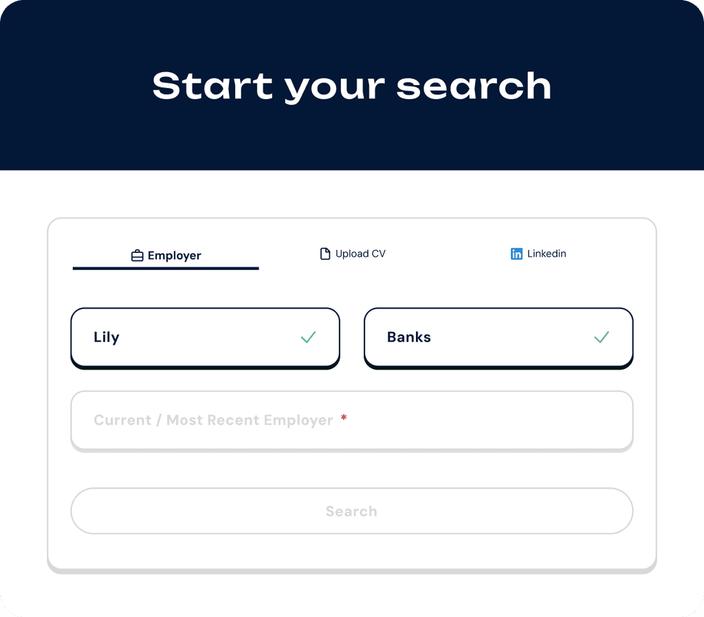 Enter a name and employer, or upload a CV or LinkedIn profile.